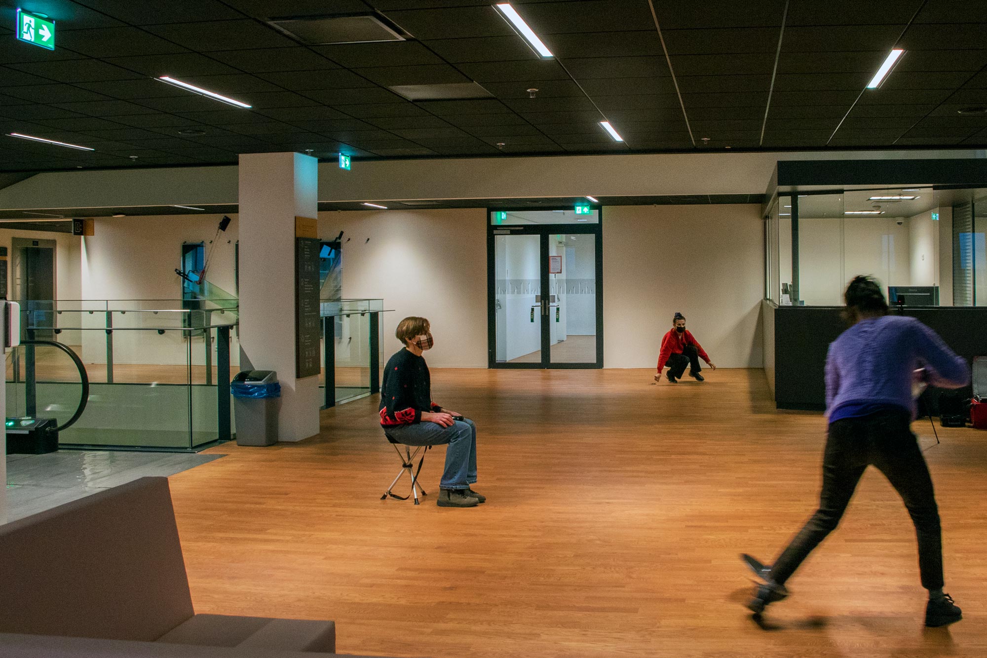 KC reception, near escalator - mariette listening