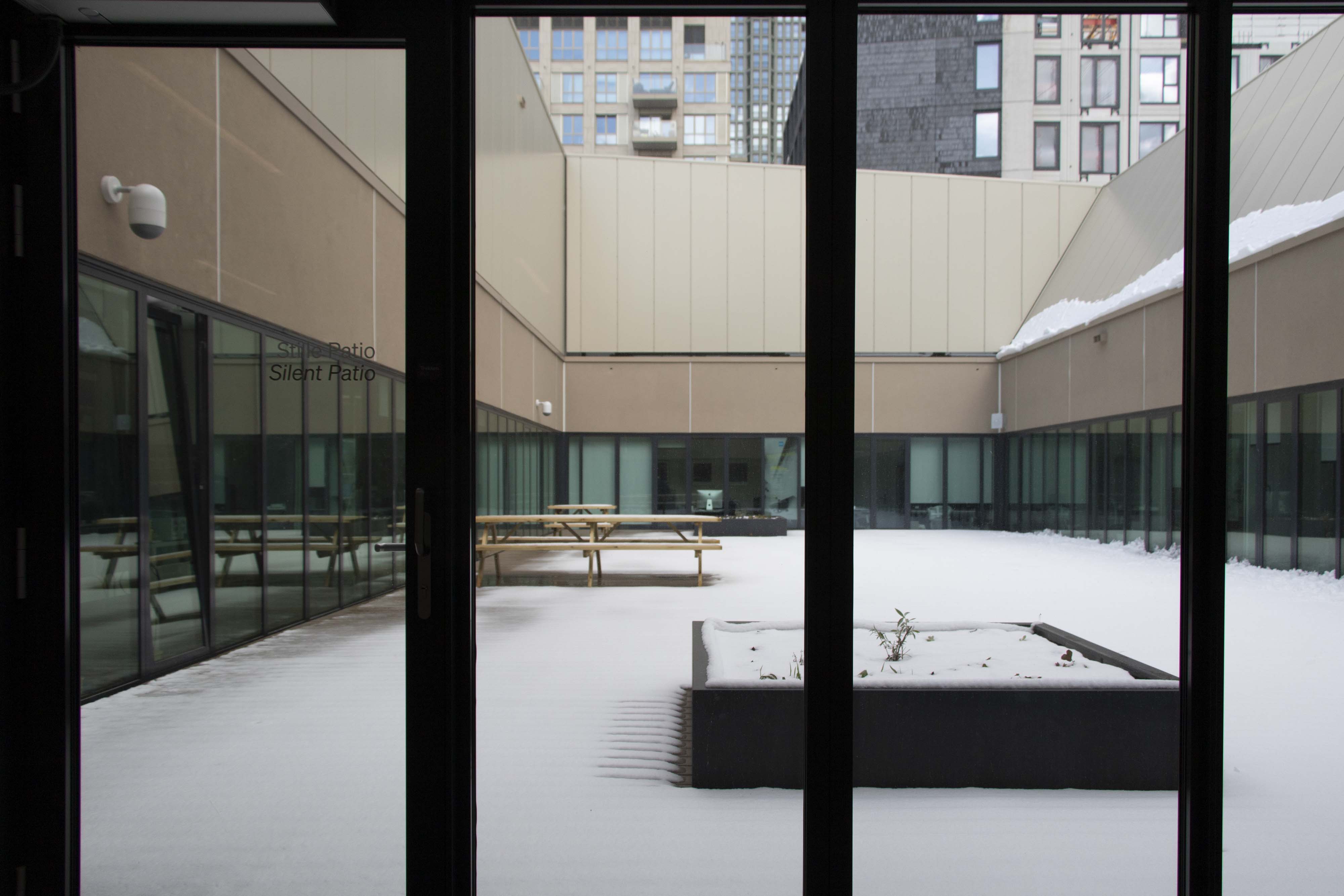 melting snow, running through a pipe in the hallway on the 6th floor right next to the (locked) exit to the silent patio